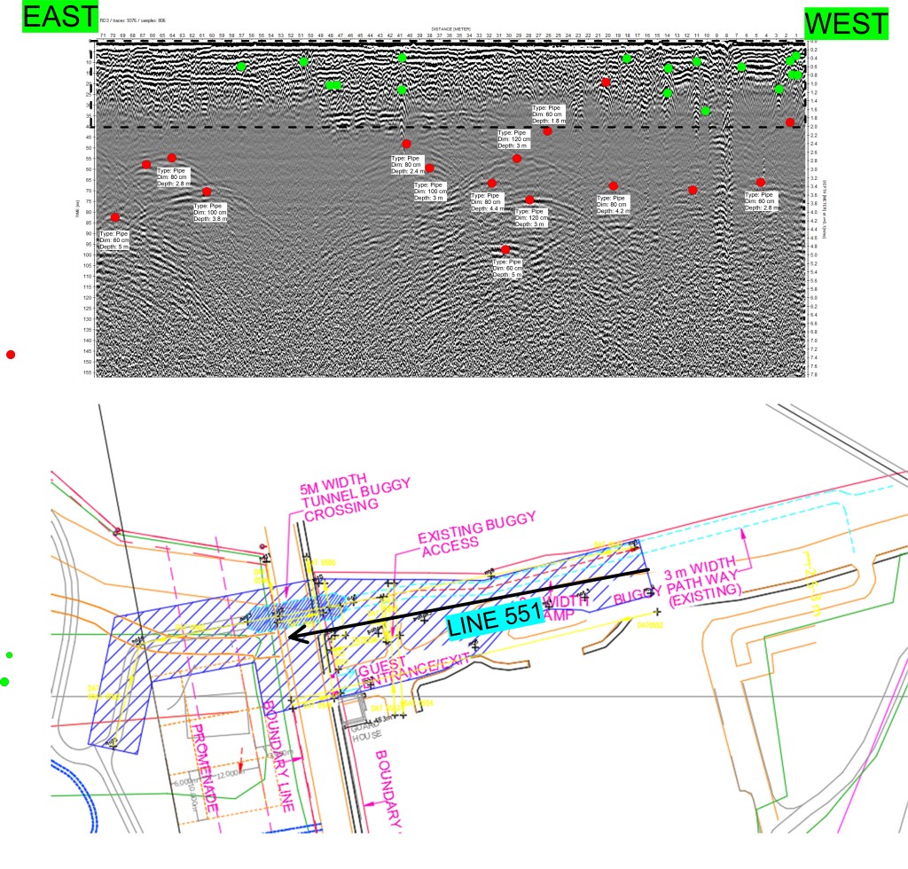 dari sini bisa dilakukan pengecekan beton untuk keperluan ketebalan beton, potensi korosi, potensi cavity dan crack. dan dari data tersebut dikombinasikan dengan uji beton sehingga bisa dilakukan perhitungan umur beton dan kondisi beton lainya.