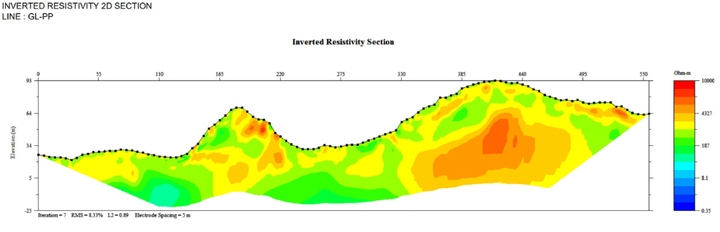 - Identifikasi zona resistivitas rendah (5–50 Ωm) yang menunjukkan keberadaan akuifer.