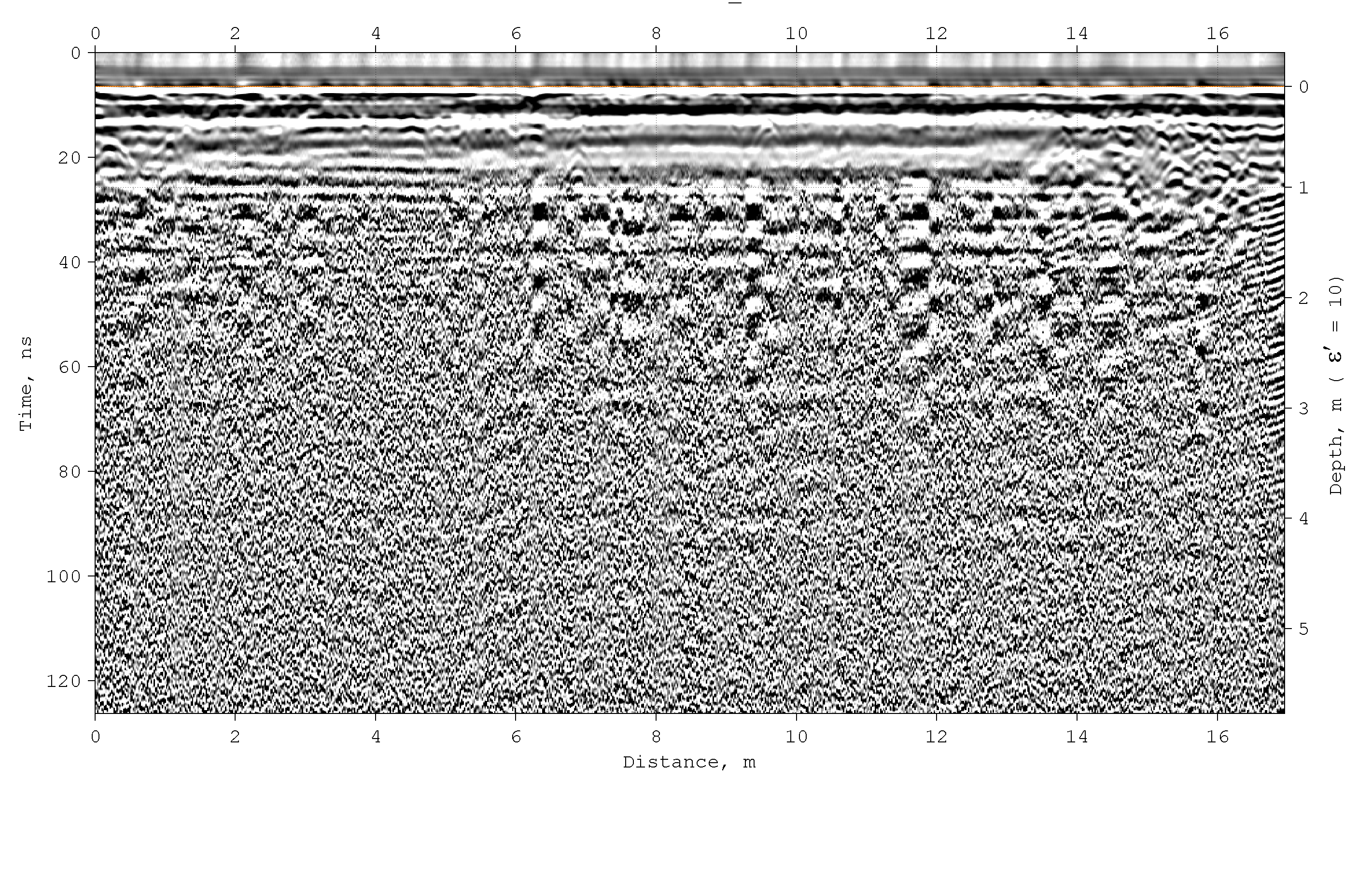 - A high-resistivity anomaly (~1500 Ωm) at 5m depth, 4m wide, suggesting an air-filled cavity.