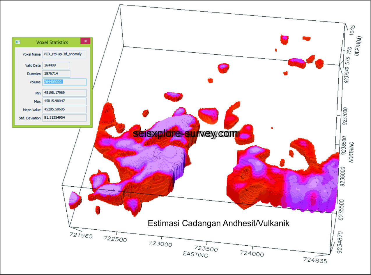 Eksplorasi batuan andesit dengan menggunakan metode geomagnet memang pas dan relatif lebih mudah karena dimensi yang cukup besar memudahkan dalam mendesign spasi lintasan ataupun interpretasinya.