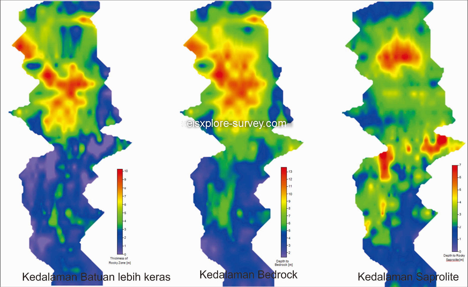 - Ketebalan dan kedalaman bawah permukaan masing-masing target dalam peta 3-D