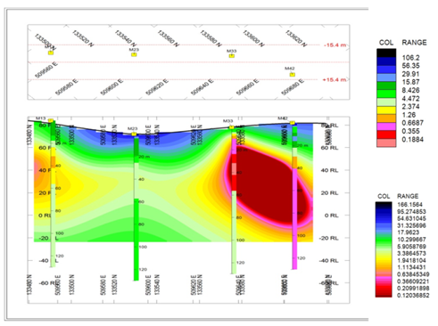 - estimasi cadangan terkira dengan memodelkan nilai resistivitasnya dengan gambaran 3-D