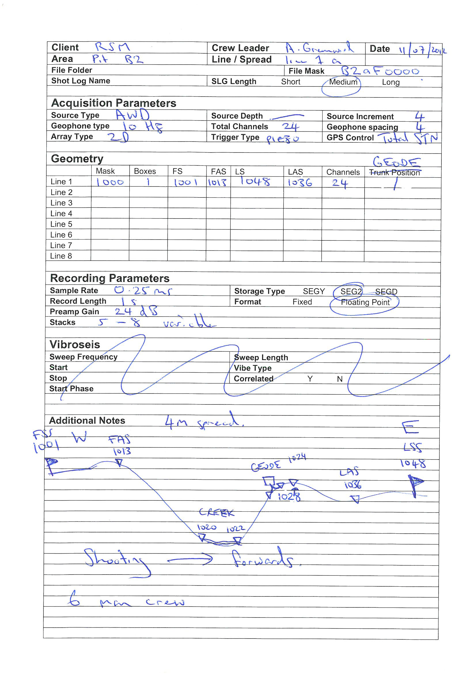 - Quick sketch of spread layout including topography with respect to STN numbers FAS, LAS, FSS and LSS.