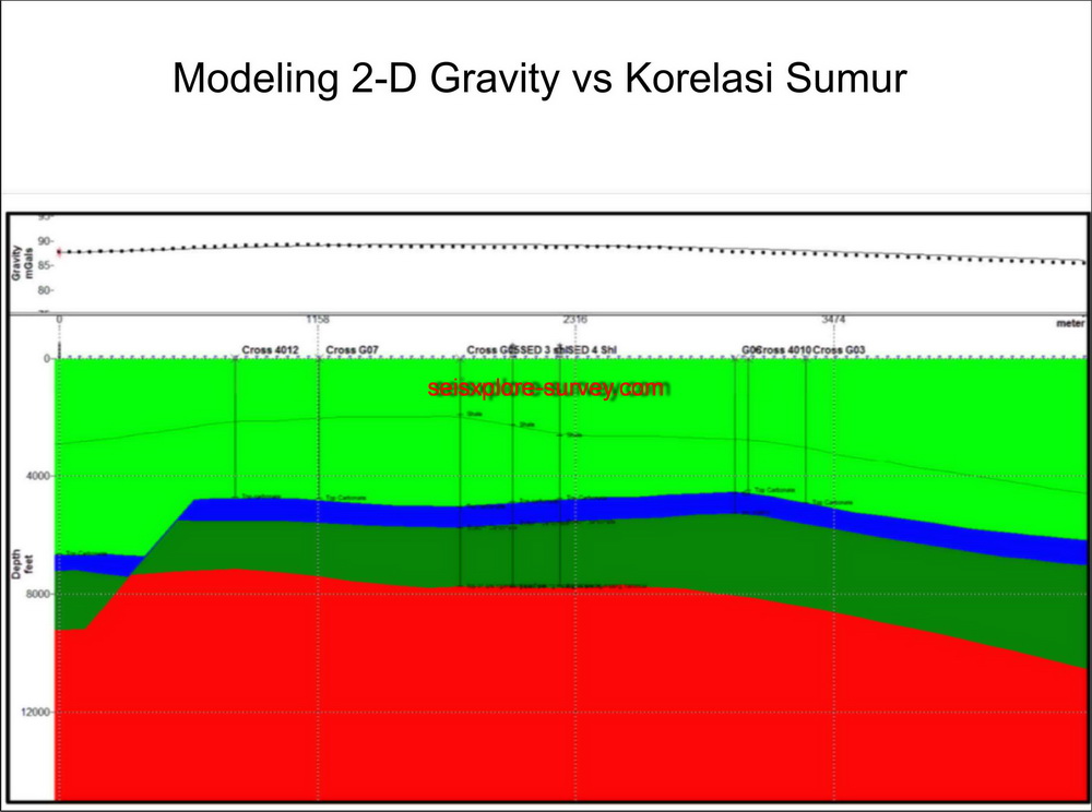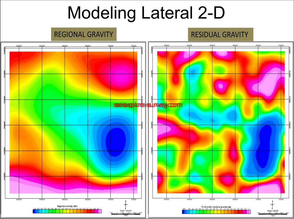 Pemodelan Gravity secara lateral akan menggambarkan bentuk subsurface dari basement dan tiap-tiap formasi sehingga area sinklin dan area antiklin di bawah permukaan bisa terlihat sehingga idenfitikasi source rock dan kemenerusanya bisa di gambarkan. Pendekatan model ini bisa didukung dengan data tambahan seperti data well dan lainya untuk meyakinkan koreksi yang di dapat dari inversi data gravity ketika menentukan kedalaman dan ketebalan dari tiap formasi.