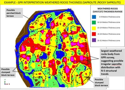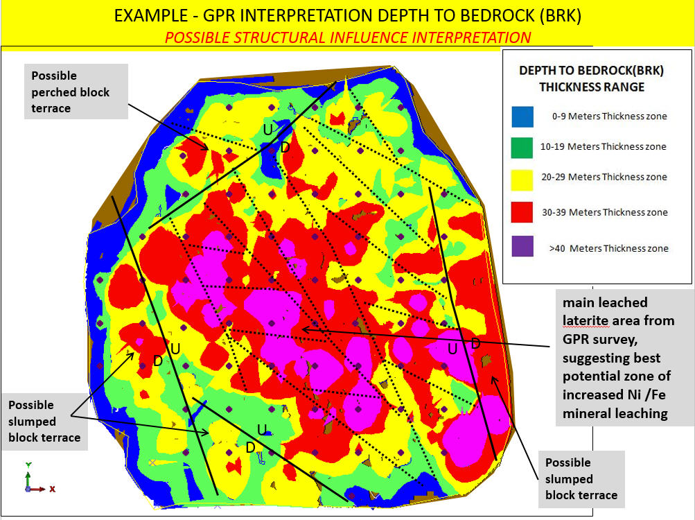 Sebaran Ketebalan Nickel Laterite,Saprolite,Limonite,Bedrock dari Interpretasi Data GPR/Georadar