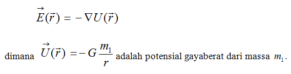 Gaya persatuan masa dari suatu partikel m1 yang mempunyai jarak r dari m2 disebut medan gayaberat dari partikel m1 dapat dinyatakan sebagai berikut:
