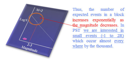 The number N of seismic events that occur in a region with Magnitude greater than M follows the Gutenberg Richter rule: