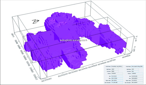 Pemodelan 3-D yang berikutnya adalah dengan melakukan pemisahan range nilai yang sudah didapatkan dilapangan(kalibrasi) dan data referensi sehingga data 2-D yang sudah diinversi dijadikan sebagai model 3-D sebagai model solid yang tentunya sudah terdapat data topografi didalamnya. Model ini akan terdapat kelebihan atau kekurangan dalam hal perhitungan cadangan jika spasi lintasan tidak sesuai dengan pemodelan tersebut karena semakin lebar spasi lintasan maka nilai interpolasi dari tiap lintasan akan semakin tinggi tetapi akan lebih bagus ketika spasi lintasanya rapat. Semakin rapat maka semakin teliti hasil perhitungan cadangan yang akan didapat.